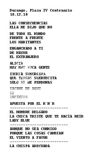 La Plaza IV Centenario fue el escenario elegido por Bunbury y Los Santos Inocentes para presentar las canciones de su nuevo disco "Las Consecuencias", además de repasar muchos de los clásicos de su repertorio incluidas versiones como "Aunque no sea conmigo" o "Apuesta por el rock 'n' roll". También sonaron dos temas de Héroes del Silencio: "Iberia sumergida" y como broche de oro "La chispa adecuada". A continuación te ofrecemos el set list al completo con la posibilidad de poder escucharlo en su versión de estudio a través de Spotify.